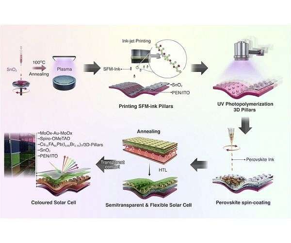 On the core of the design is a sample of microscopic polymeric pillars created by 3D printing, which kind openings that regulate how a lot mild passes by means of with out altering the perovskite absorber layer. The fabrication route avoids excessive temperatures and poisonous solvents, making it suitable with versatile substrates and decreasing environmental impression throughout manufacturing.