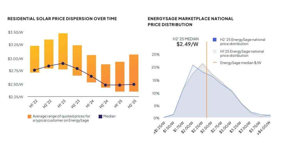 These particulars and extra have been revealed within the twenty second “EnergySage Intel: Home Electrification Marketplace Report,” launched at this time. The semiannual report analyzed thousands and thousands of transaction-level knowledge factors from owners purchasing on energysage.com between July and December 2025 throughout photo voltaic panels, inverters, batteries, warmth pumps and different electrification upgrades from firms working in all 50 states and Washington, D.C.