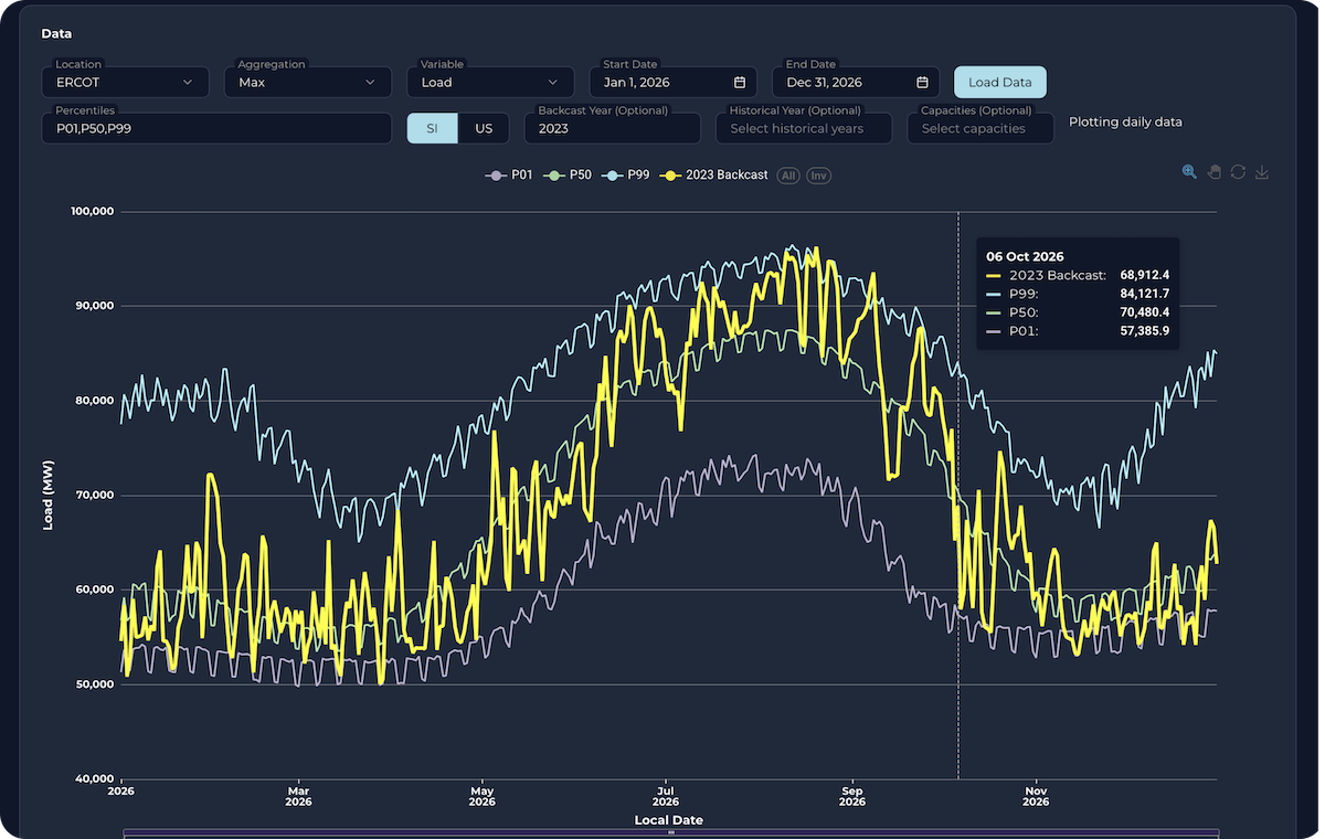 - Local weather-aware portfolio danger administration: Precisely calculates the danger to power investments ensuing from weather-driven impacts throughout load, wind, and photo voltaic.
