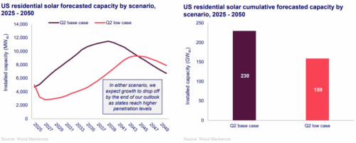 Even in Wooden Mackenzie’s conservative 25-year low-case state of affairs — which assumes solely 12% TAM penetration — the market would nonetheless add 150 GW of residential photo voltaic capability by 2050.